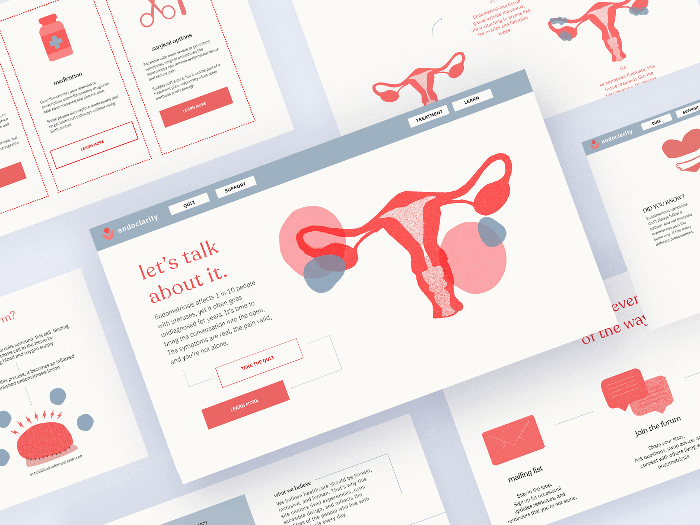 Endoclarity is an information resource and public awareness campaign designed to inform and destigmatize endometriosis through an inclusive, engaging and visually appealing platform. Aimed at both newly diagnosed individuals and those seeking a better understanding of the condition, a website offers clear, accessible information on endometriosis, symptom management, treatment options, and available support. By combining medically reviewed facts with creative explanatory graphics, Endoclarity makes navigating a complex health condition feel approachable, empowering users to better advocate for their own care.